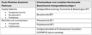 - nieuwe modules: Vastgoedpraktijk en Professioneel Handelen