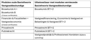 Is de Basistheorie Vastgoeddeskundige (BT1+2) nog steeds van toepassing voor zowel de makelaarsopleiding als de taxateursopleiding?